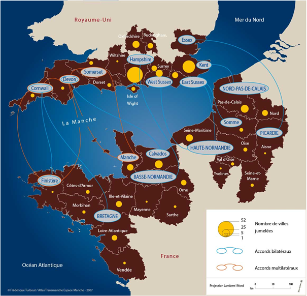 Depuis la Seconde Guerre mondiale, les jumelages entre villes du sud de l’Angleterre et du nord de la France n’ont cessé de croître, dépassant aujourd’hui les 350 partenariats. Ces liens, renforcés par l’approche du marché unique européen, existent à divers niveaux (villages, villes, régions) et visent des objectifs variés : développement économique, amélioration des infrastructures, et échanges culturels. Parmi les exemples notables, le Kent et le Nord-Pas-de-Calais ont collaboré pour la réalisation du Tunnel sous la Manche, tandis qu’au niveau local, les jumelages facilitent les échanges scolaires et amicaux, améliorant les compétences linguistiques et l’entente transfrontalière.